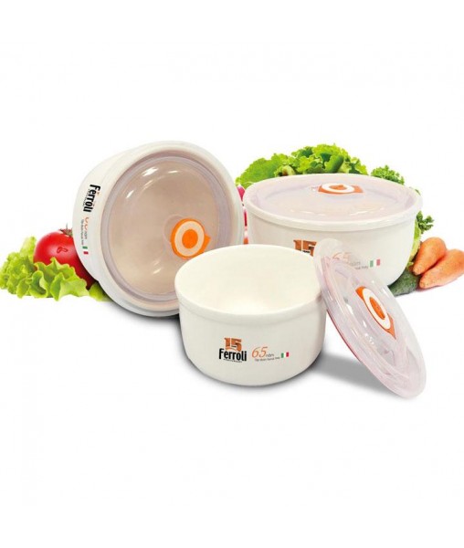 Bộ 3 bát sứ có nắp hút chân không