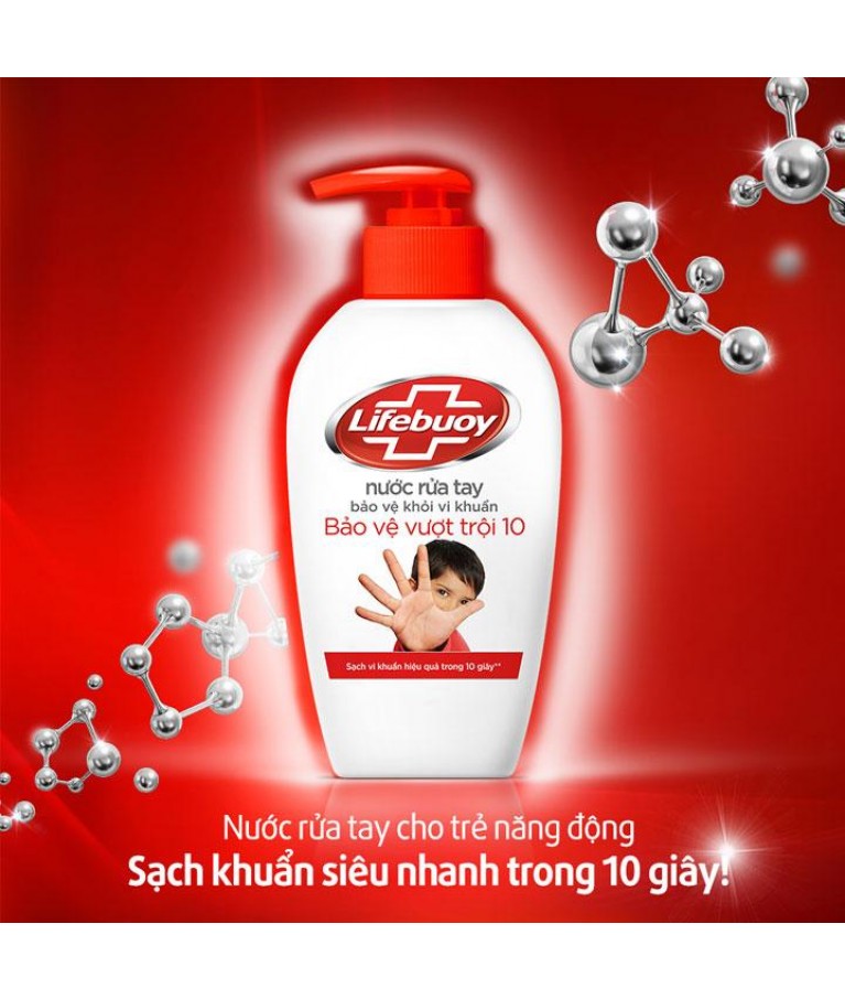 Nước rửa tay Lifebuoy giúp làm sạch vi khuẩn hiệu quả trong 10 giây, rửa siêu nhanh, giúp da mềm mại, mịn màng.