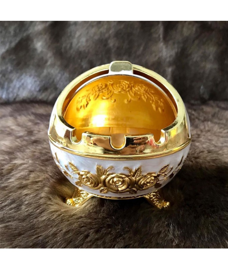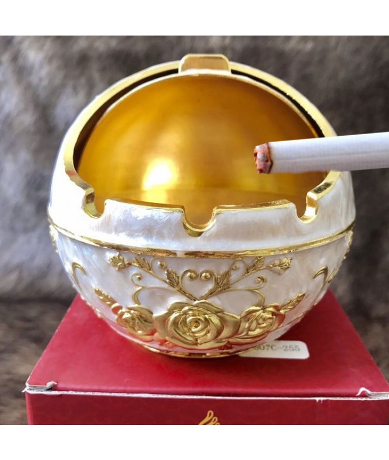 Gạt tàn với chất liệu hợp kim mạ vàng, điêu khắc hoa văn