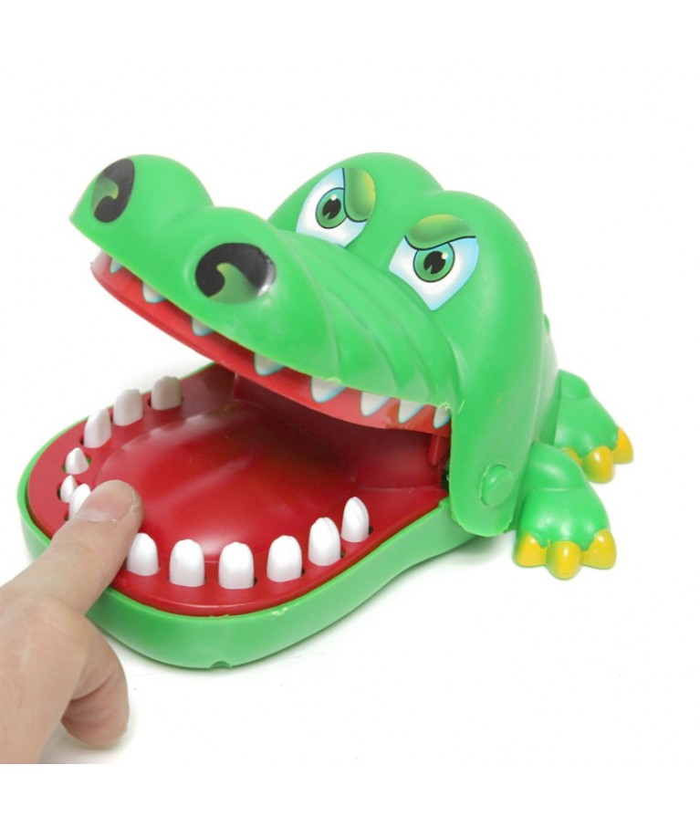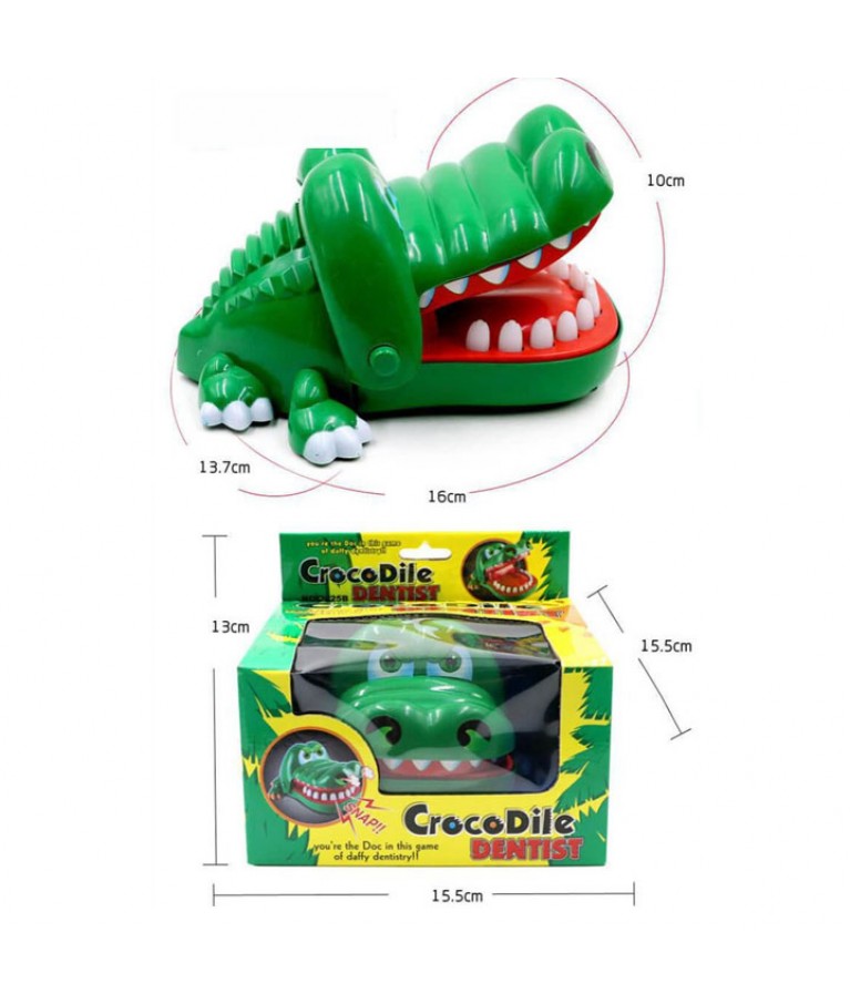 + Sản phẩm có hình thù chú cá sấu ngộ nghĩnh với hàm răng to, bóng loáng. Và nhiện vụ của bạn là đóng giả thành một nha sĩ khám răng, loại bỏ những chiếc răng sâu màu vàng cho chú cá sấu đó và thay bằng những chiếc răng trắng.