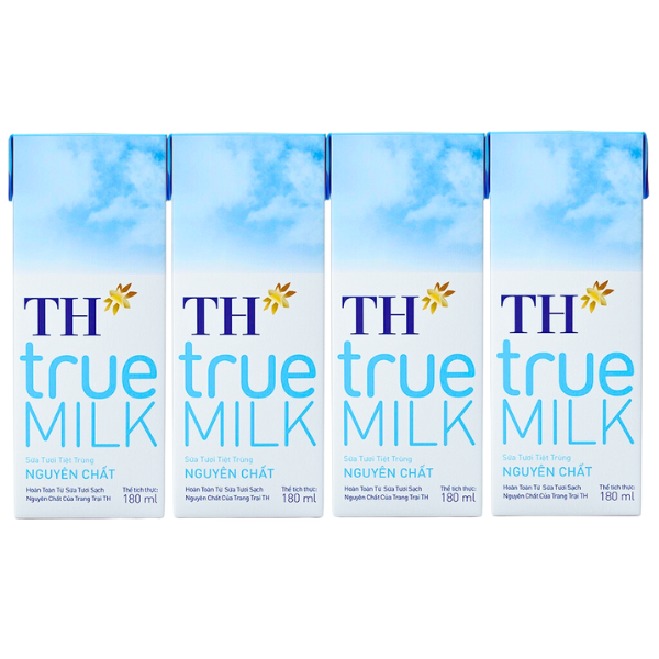 Lốc 4 Hộp Sữa Tươi Tiệt Trùng Nguyên Chất TH True Milk 180ml