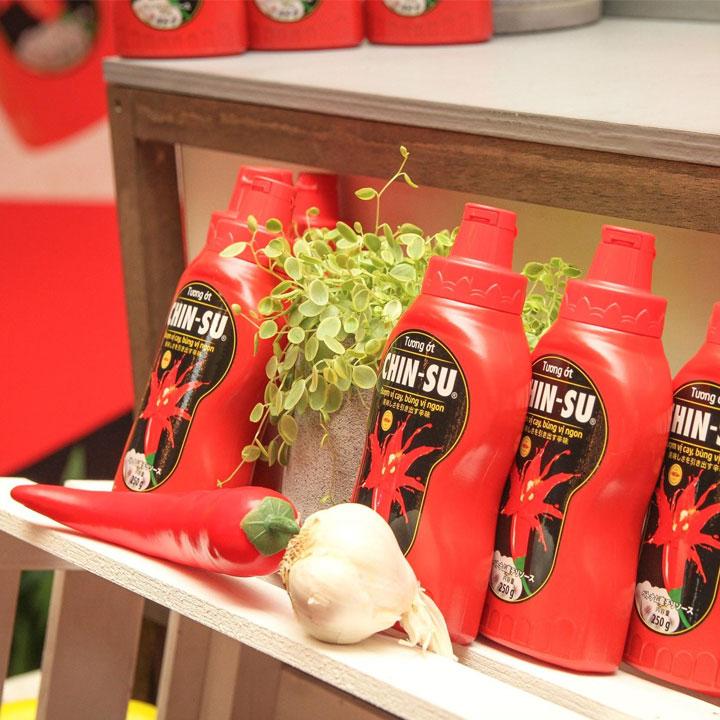 + Với nguyên liệu sạch được làm từ những trái ớt đỏ chín cây kết hợp cùng tỏi tươi và nhiều loại gia vị đặc biệt, tương ớt Chin-su mang đến dòng tương sóng sánh, giúp các món ăn thêm đậm vị.