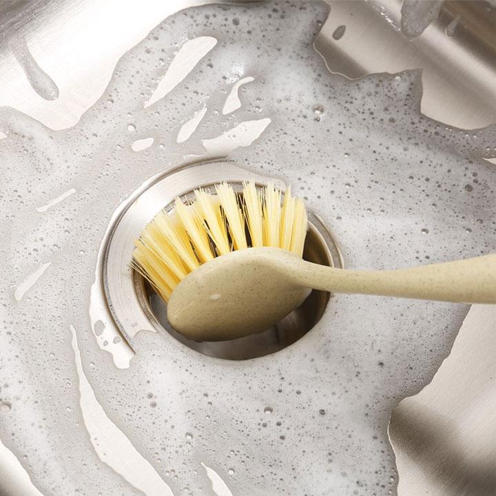 Dùng bàn chải để cọ rửa nồi niêu xoong chảo