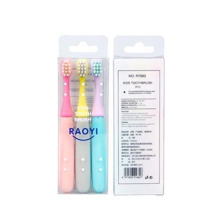 ☑️ Bàn Chải Đánh Răng Trẻ Em RAOYI với thiết kế đầu bàn chải là những sợi chỉ tơ mềm là sản phẩm thích hợp cho răng nướu nhạy cảm, dành cho trẻ từ 3-5 tuổi.