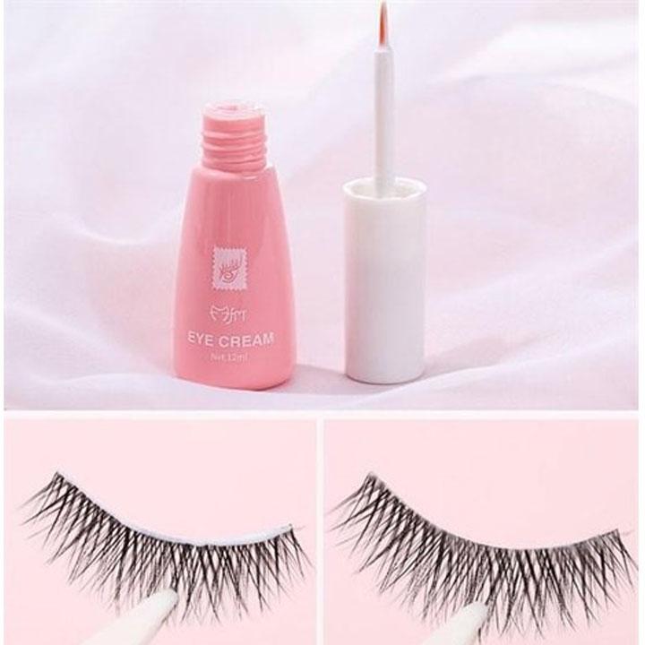 Dùng dán lông mi: Dùng cọ bôi lên lông mi và để khô khoảng 30s sau đó gắn lông mi lên mắt.