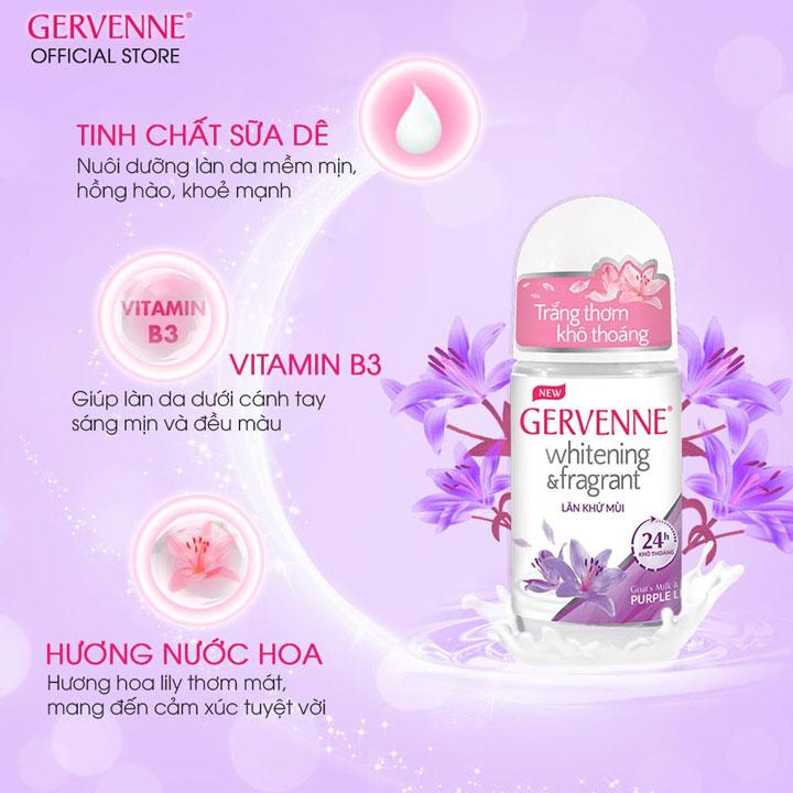 ☑️ Lăn khử mùi cơ thể Gervenne 25ml với công thức mới từ hương hoa Lily nổi bật giúp giảm tiết mồ hôi và ngăn ngừa mùi hiệu quả suốt 24 giờ đồng hồ.☑️ Sản phẩm không chỉ giúp ngăn mùi cơ thể, tạo cảm giác tự tin, khô thoáng mà còn mang đến hương thơm quyến rũ, ngọt ngào và sang trọng.
