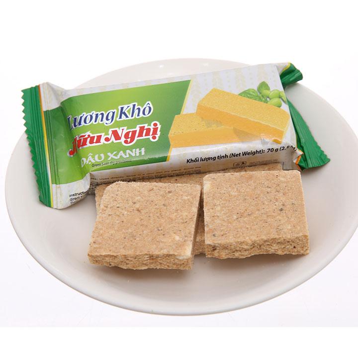 | Thành phần | Nhìn hình ảnh bánh lương khô Hải Châu chắc nhiều bạn sẽ nhớ lại món ăn huyền thoại ngày xưa này! Lúc còn học cấp 1, ngày nào cũng ăn cái món này mà không thấy ngán luôn, ăn xong thì bánh dắt hết vào răng, súc miệng mãi cũng không sạch. Lương khô – đúng như cái tên của nó, khô như gì gì mà ngày xưa lại nghiện mọi người ạ. |