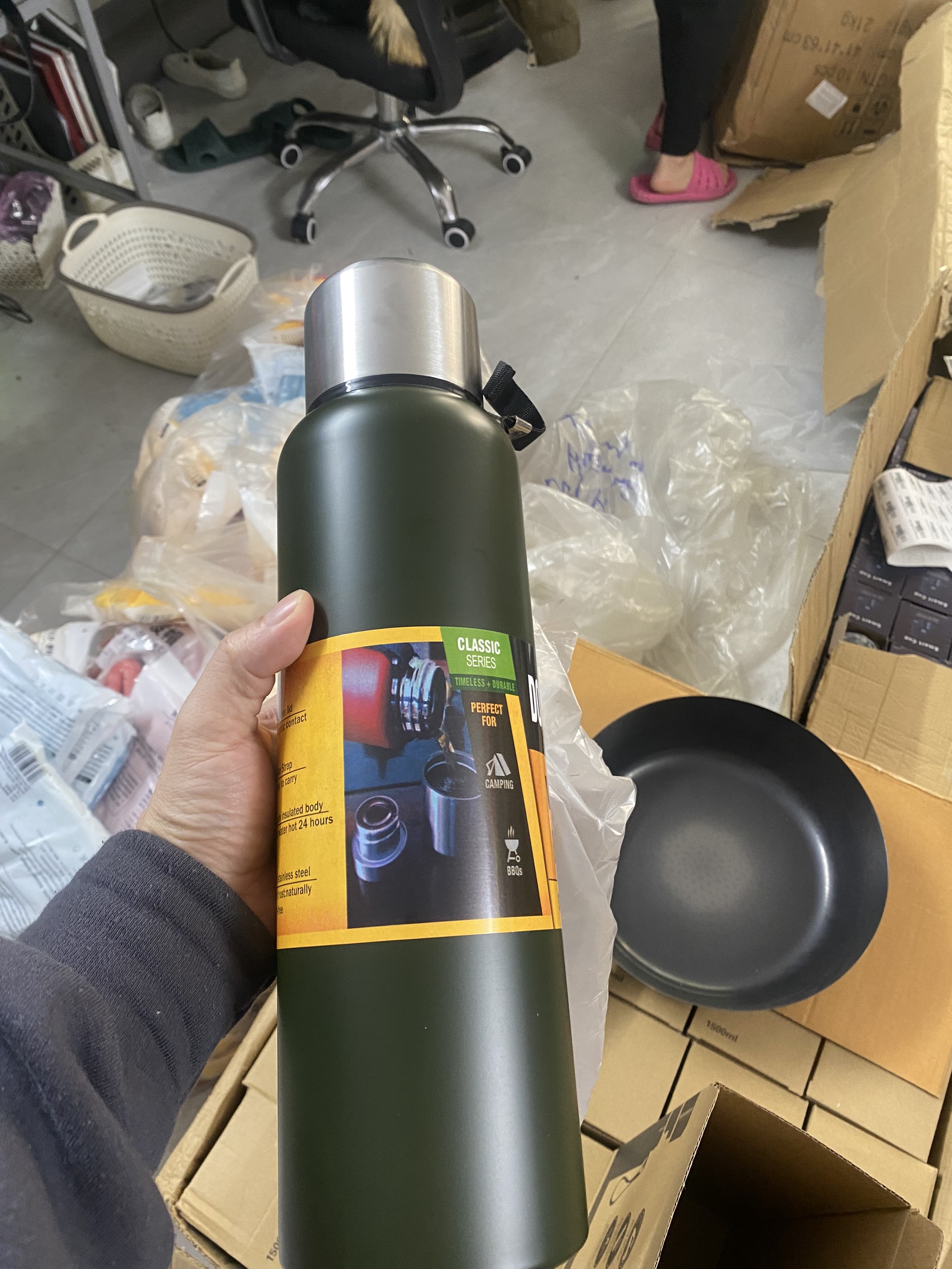 - Chất liệu bình được làm từ inox dày , do đó cho độ an toàn và độ bền cao. SP có quai cầm tiện lợi, thiết kế nắp xoay giúp dễ vặn chặt với thân bình. Với chất liệu inox gọn nhẹ và thiết kế hình trụ tròn, bình giữ nhiệt sẽ mang đến cho bạn sự tiện lợi và thoải mái cả khi sử dụng cũng như bảo quản hoặc mang theo trong ba lô, túi xách.