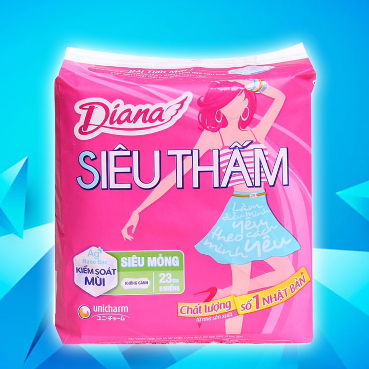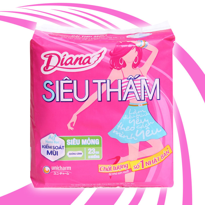 Băng Vệ Sinh Diana Siêu Thấm Siêu Mỏng Cánh 23cm (Gói 8 Miếng) được nghiên cứu và phát triển để đạt đến độ siêu mỏng khá ấn tượng, mỏng hơn nhiều so với các loại băng thông thường khác nhằm đảm bảo cho bạn cảm thấy thoải mái như không phải trong những ngày "đèn đỏ".