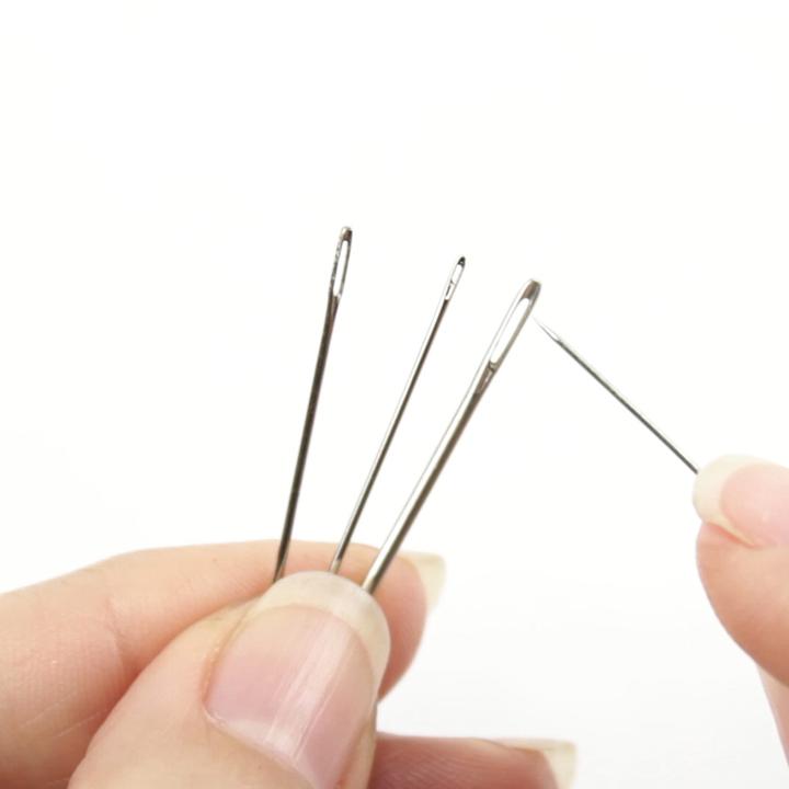 Chọn cây kim có kích thước phù hợp với độ dày sợi chỉ. Sau khi đã chọn được loại chỉ cần sử dụng, bạn hãy chọn một cây kim có lỗ đủ rộng để luồn sợi chỉ qua. Lỗ kim không được nhỏ hơn sợi chỉ, nếu không bạn sẽ khó có thể xỏ kim. Bạn cũng cần quan sát mũi kim. Bạn nên chọn cây kim nào có mũi nhọn để đâm xuyên vải dễ dàng; ví dụ, hãy chọn cây kim có mũi cùn (lụt) nếu bạn khâu vải đan.Cân nhắc mua một bộ kim có các kích thước khác nhau để bạn có thể tìm được cây có kích thước phù hợp.