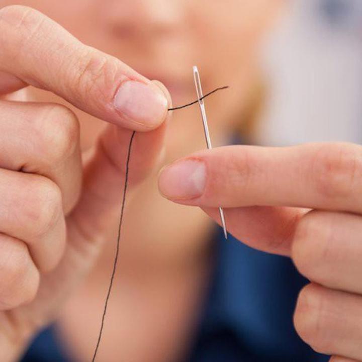 Thử liếm ướt đầu sợi chỉ để các sợi vải dính vào nhau.