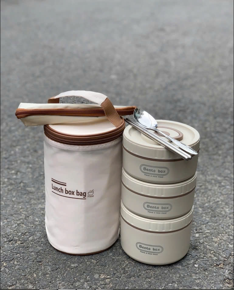 HỘP CƠM 3 TẦNG LUNCH BOX TẶNG KÈM TÚI ĐỰNG + ĐŨA THÌA