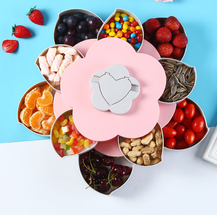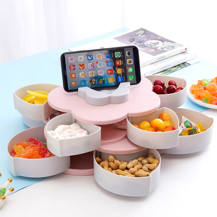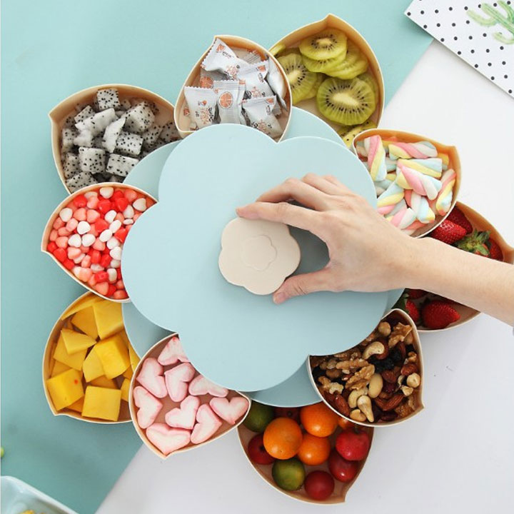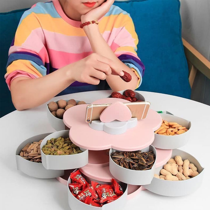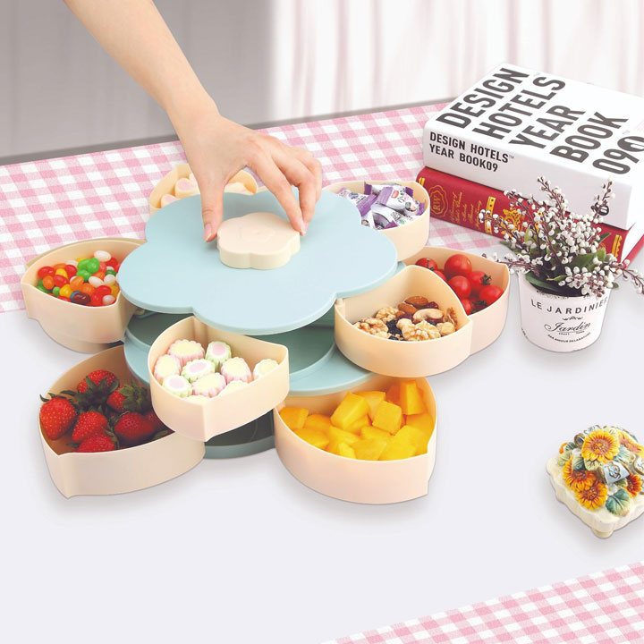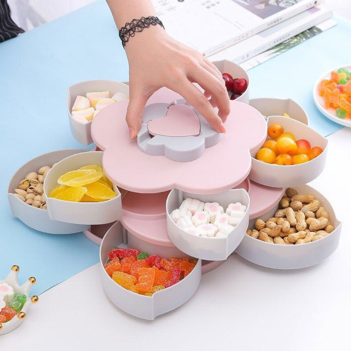 Khay đựng mứt xoay 5 cánh hình hoa 2 tầng