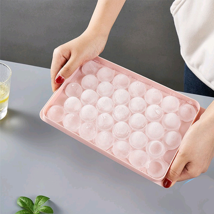 Khay đá tròn 33 viên khay rau câu viên tròn có nắp