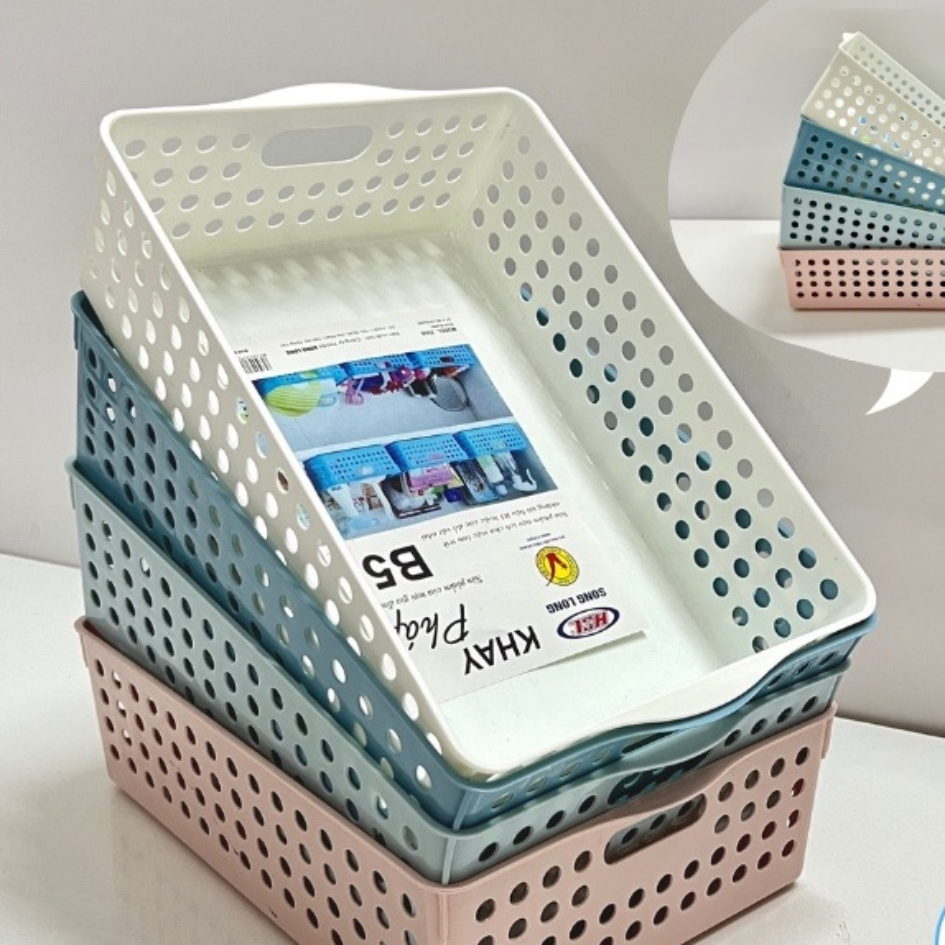 Thiết kế thông minh với độ sâu, nhiều lỗ thoáng khí và có tay cầm tiện ích của Khay nhựa Pháp B5 Song Long 2346 thoải mái đựng các vật dụng văn phòng phẩm,tài liệu B5, vật dụng sinh hoạt hoặc mỹ phẩm chai lọ hay bút kẻ, nước hoa có độ dài cao cho đến các vật dụng linh tinh nhỏ dễ thất lạc mà không có vấn đề trở ngại nào.