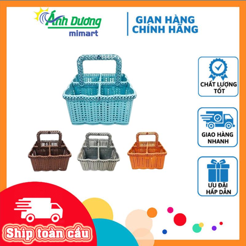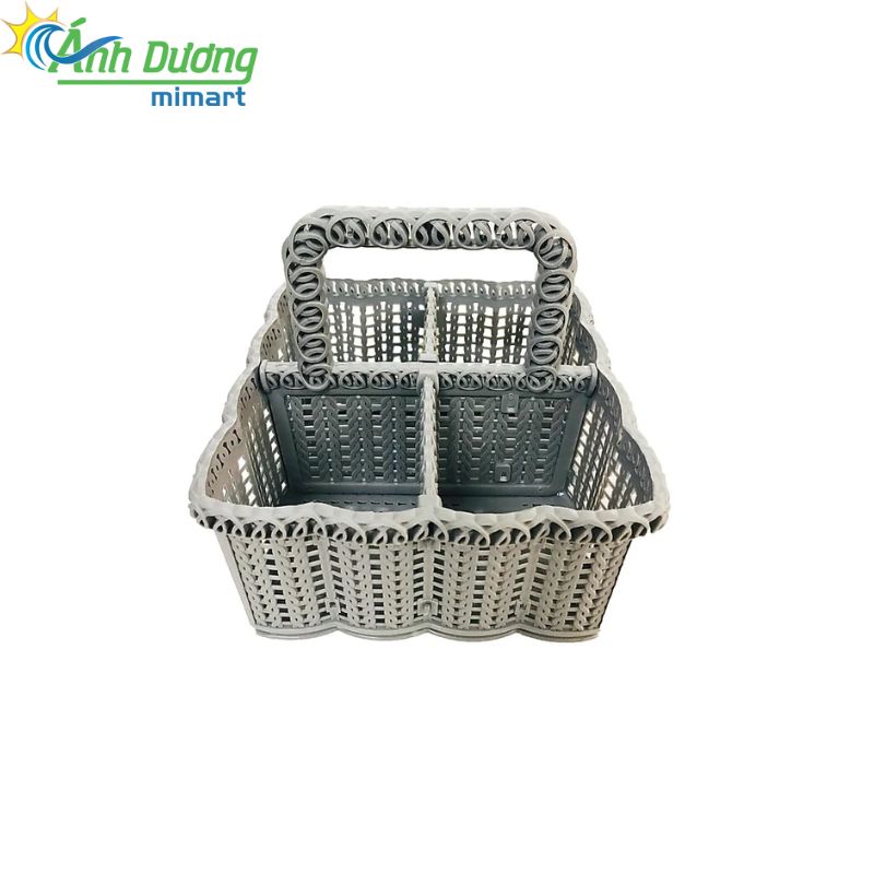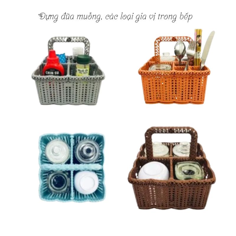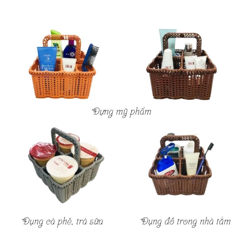 Rổ Nhựa Vuông Cao Cấp 4 Ngăn Có Quai Xách Đa Năng Đựng Mỹ Phẩm, Gia Vị, Cà Phê, Đồ Nhà Tắm