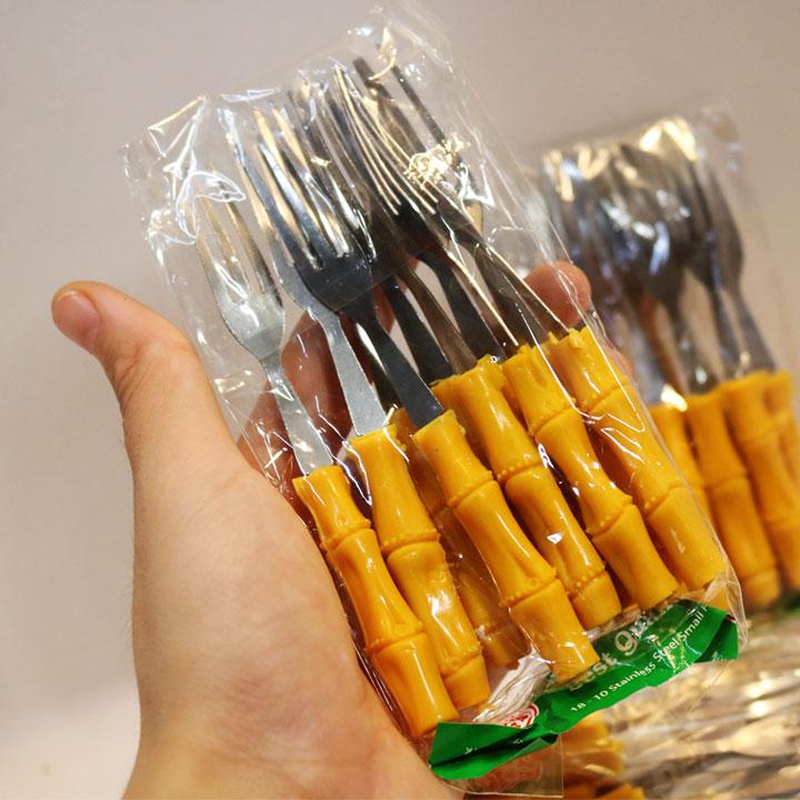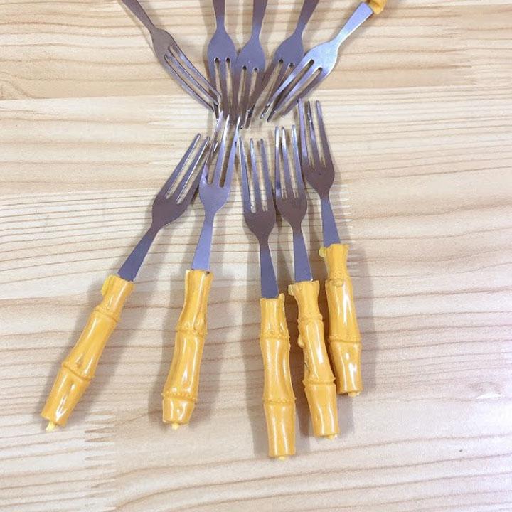 Đặc điểm nổi bật bộ 10 nĩa ăn trái cây☑️ Chất liệu nhựa bền, inox an toàn☑️ Cán nhựa màu vàng, hình ống trúc sang trọng ☑️ Phù hợp trong các buổi tiệc hay các buổi ăn gia đình, dã ngoại ngoài trời. ☑️ Đảm bảo sử dụng lâu dài, bền chắc theo thời gian. ☑️ Kích thước: 12cm |