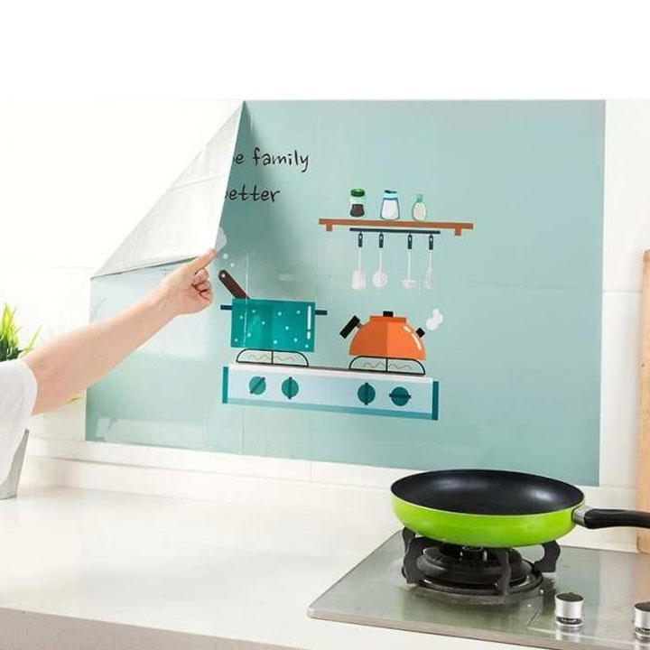 Miếng giấy chống dầu mỡ, không thấm nước, tấm Decal trang trí tráng nhôm dán tường nhà bếp cách nhiệt đa năng.