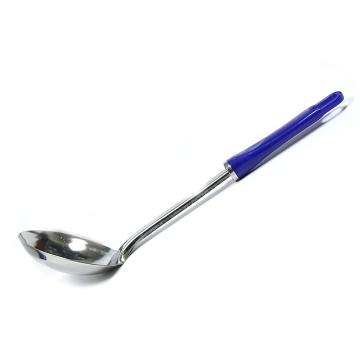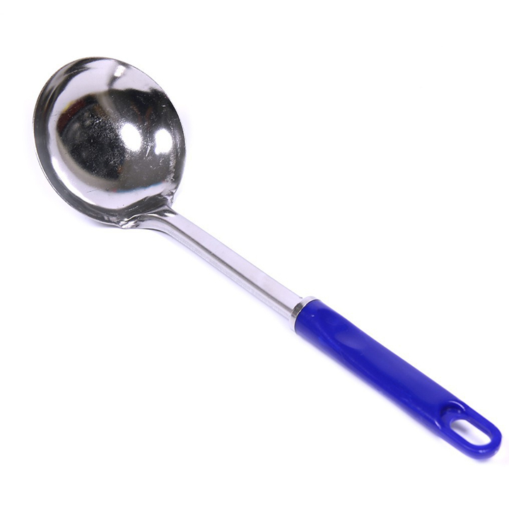 Cán được làm bằng inox đặc cực dày và xịn dùng không lo bị vỡ hỏng giống muôi nhựa, cán rất dài dày cầm nặng tay chuyên dùng ăn lâu không sợ bỏng tay