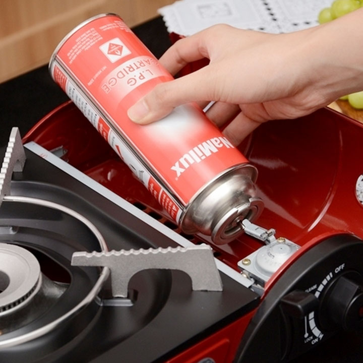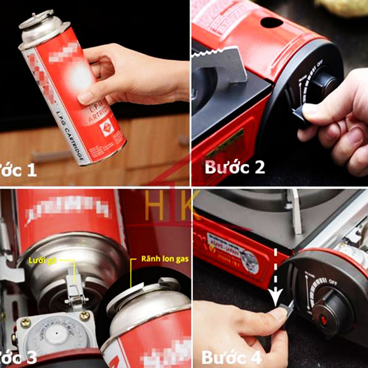 - Bước 4: Nhấn cần gạt xuống vị trí LOCK và đậy nắp che lon ga lại.