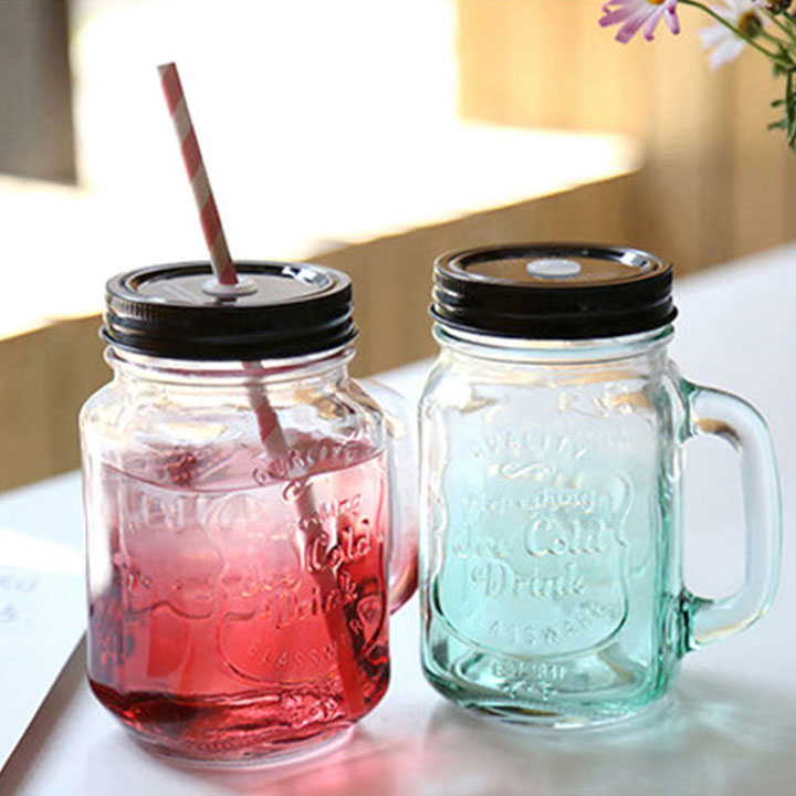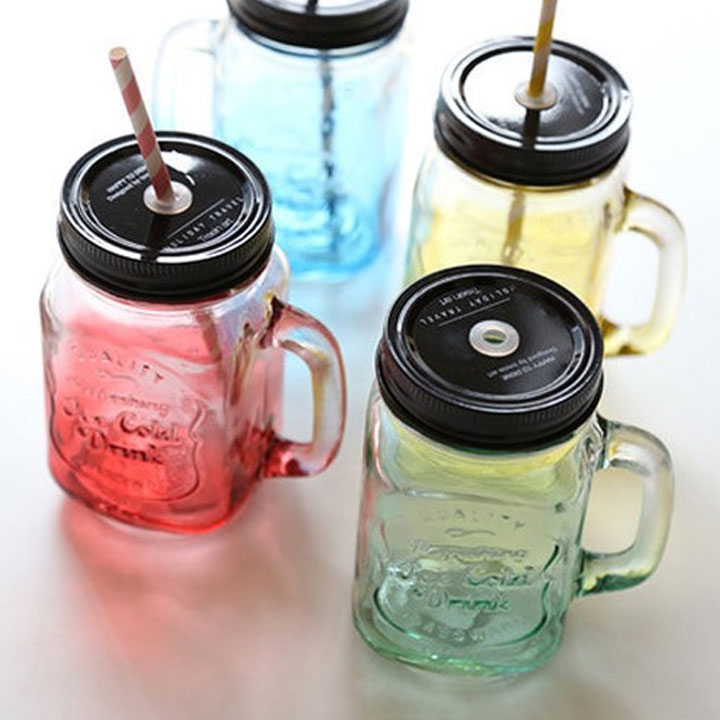Cốc thủy tinh có quai cầm và lỗ cắm ông hút
