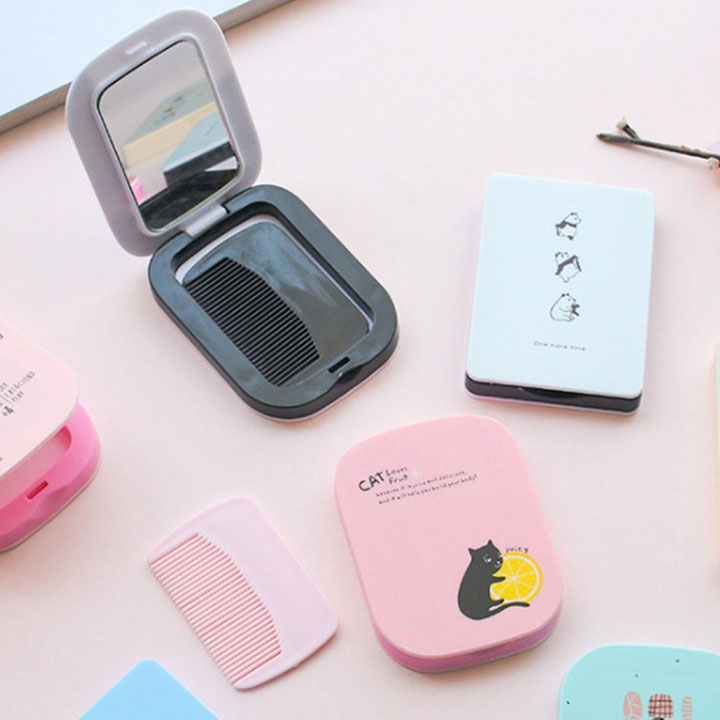 ☑️ Được thiết kế nhỏ gọn, tiện dụng, bộ gương lược không chiếm nhiều diện tích trong túi xách, nên bạn có thể thoải mái mang theo bên mình.☑️ Bộ gương kèm lược được thiết kế liền bộ với nhau, tránh trường hợp lược rơi ra ngoài.