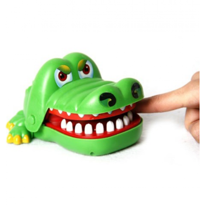 + Bạn đang lo rằng các bé sẽ gặp khó khăn khi ấn những cái răng này ư? Đừng lo, những chiếc răng của chú cá sấu này rất dễ bấm, kích thước lớn và rất nhạy, các bé cũng sẽ dễ dàng sử dụng mà thôi. Khi muốn chơi lại, bạn chỉ cần nâng hàm trên của cá sấu lên là được. Hãy cố gắng và thật cẩn thận sao cho chú cá sấu không “ngậm” được ngón tay bạn nhé. Cách chơi bộ đồ chơi cá sấu cắn tay Crocodile Dentist
