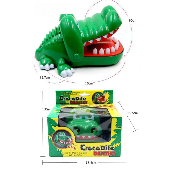 + Sản phẩm có hình thù chú cá sấu ngộ nghĩnh với hàm răng to, bóng loáng. Và nhiện vụ của bạn là đóng giả thành một nha sĩ khám răng, loại bỏ những chiếc răng sâu màu vàng cho chú cá sấu đó và thay bằng những chiếc răng trắng.