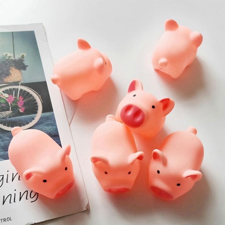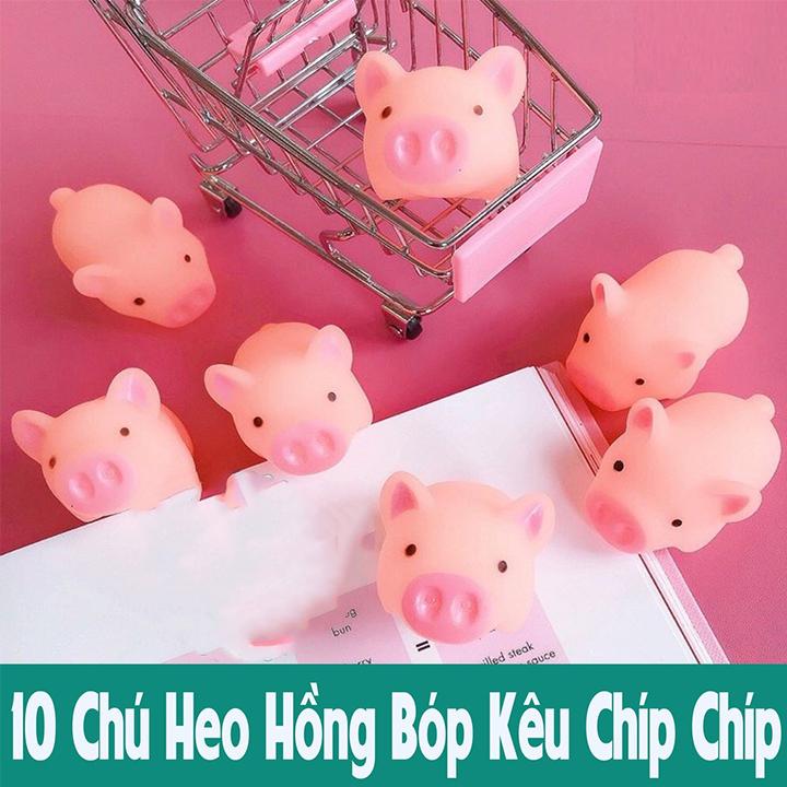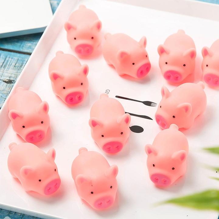 ☑️ Sản phẩm gồm 12 đồ chơi heo hồng bóp kêu như hình.