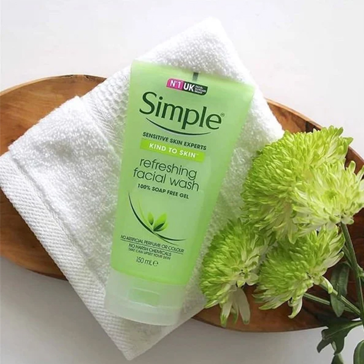 Nếu bạn là cô nàng yêu thích sự dịu nhẹ, mềm mại thì ngại gì mà không thử sữa rửa mặt dạng gel Simple Kind To Skin Refreshing Facial Wash của hãng Simple 100% không chứa xà phòng thích hợp với mọi loại da nhất là làn da nhạy cảm. Sản phẩm của hãng Simple tuy có mức giá bình dân nhưng lại rất được lòng chị em ngay cả các beauty blogger cũng phải "mê tít".