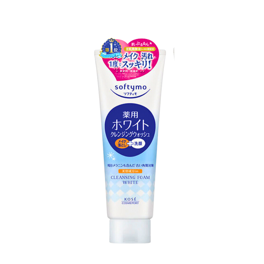 2. Kose Softymo Medicated White Cleansing Wash: Chứa thành phần làm trắng da từ bột ngọc trai, sữa rửa mặt trắng da Kose Softymo White giúp da sáng lên từng ngày, làm mờ vết thâm. Lớp bọt siêu mịn có kích thước micro giúp làm sạch sâu lỗ chân lông, loại bỏ lớp makeup. Ngoài ra, Kose White còn giúp diệt khuẩn, ngăn ngừa mụn hiệu quả.