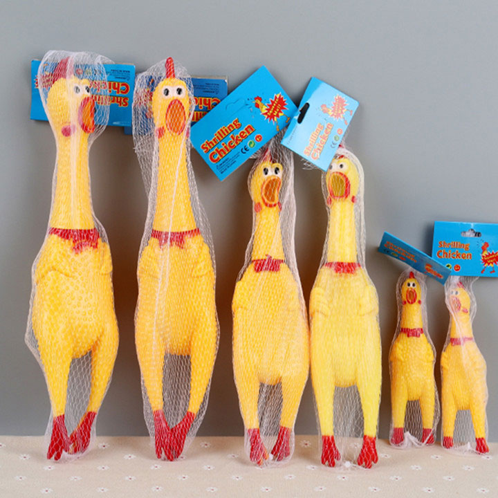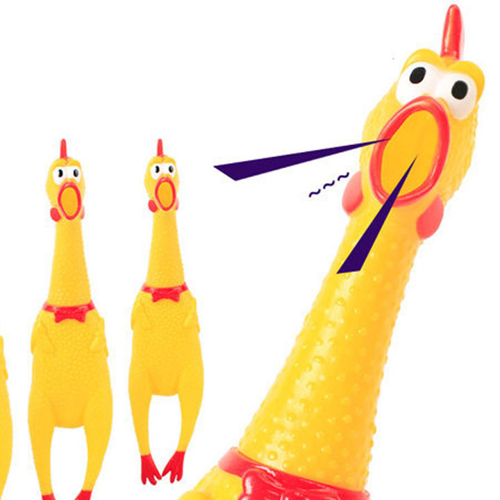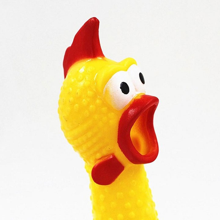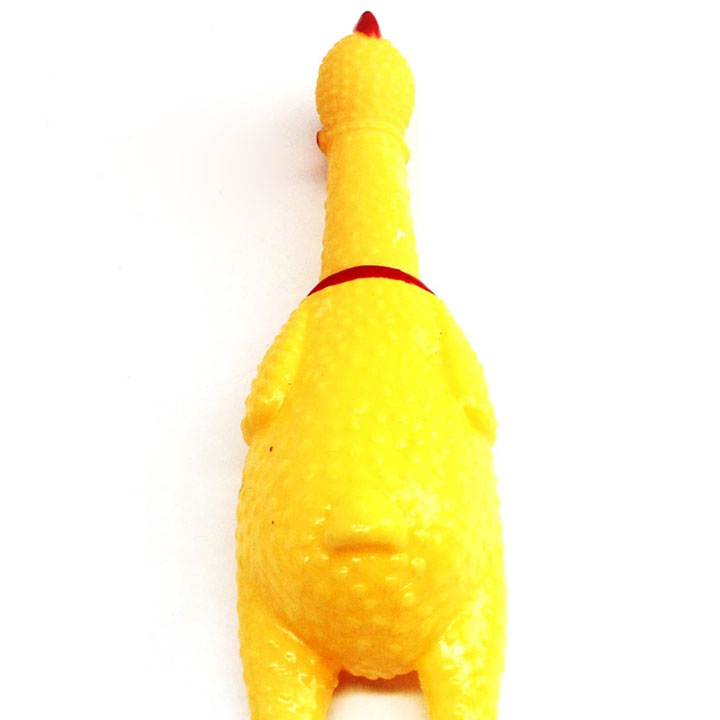 Gà được làm từ chất liệu cao su dẻo khi bạn bóp sẽ tạo luồng không khí làm chiếc còi được gắn trong con gà phát ra âm thanh.