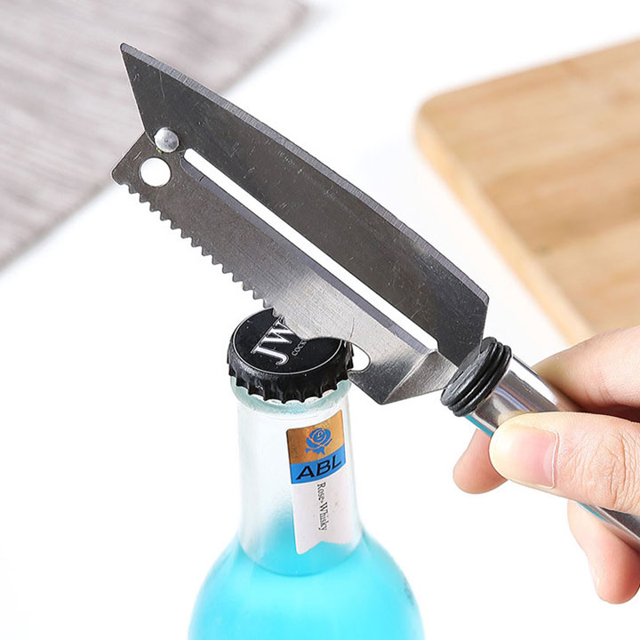 ☑️ Ngoài ra sống dao còn thiết kế móc khuyết để khui mở nắp chai bia..