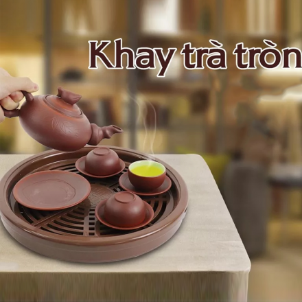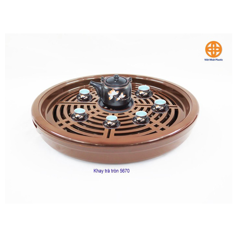 Khay Trà Tròn Giả Gỗ Chất Liệu Nhựa Việt Nhật - Khay đựng ấm chén sang trọng dễ tháo rời