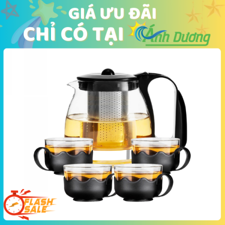 Bộ bình lọc trà thủy tinh tặng kèm 4 ly