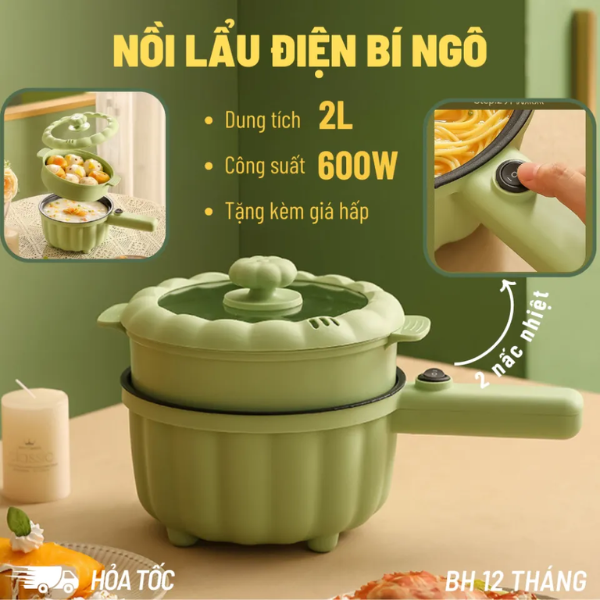 Nồi lẩu mini đa năng có vỉ hấp tiện lợi dung tích 2 lít