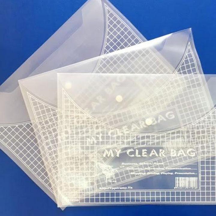 ☑️ Túi hồ sơ có khuy bấm được sản xuất từ màng nhựa PP cao cấp, màng nhựa được được sản xuất từ máy cán màng hiện đại. Túi với chất liệu trong suốt, dẻo dai bền đẹp.