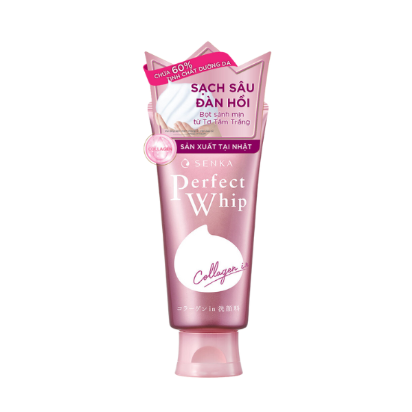Sữa rửa mặt tạo bọt Collagen Senka Perfect Whip In với bọt tơ tằm trắng mịn kết hợp tinh chất Collagen nhẹ nhàng, giúp làm sạch bụi bẩn, bã nhờn sâu bên trong lỗ chân lông, đồng thời giúp da săn chắc, đàn hồi, căng mịn, làm mờ nếp nhăn, vết chân chim, hạn chế tình trạng chảy xệ da.